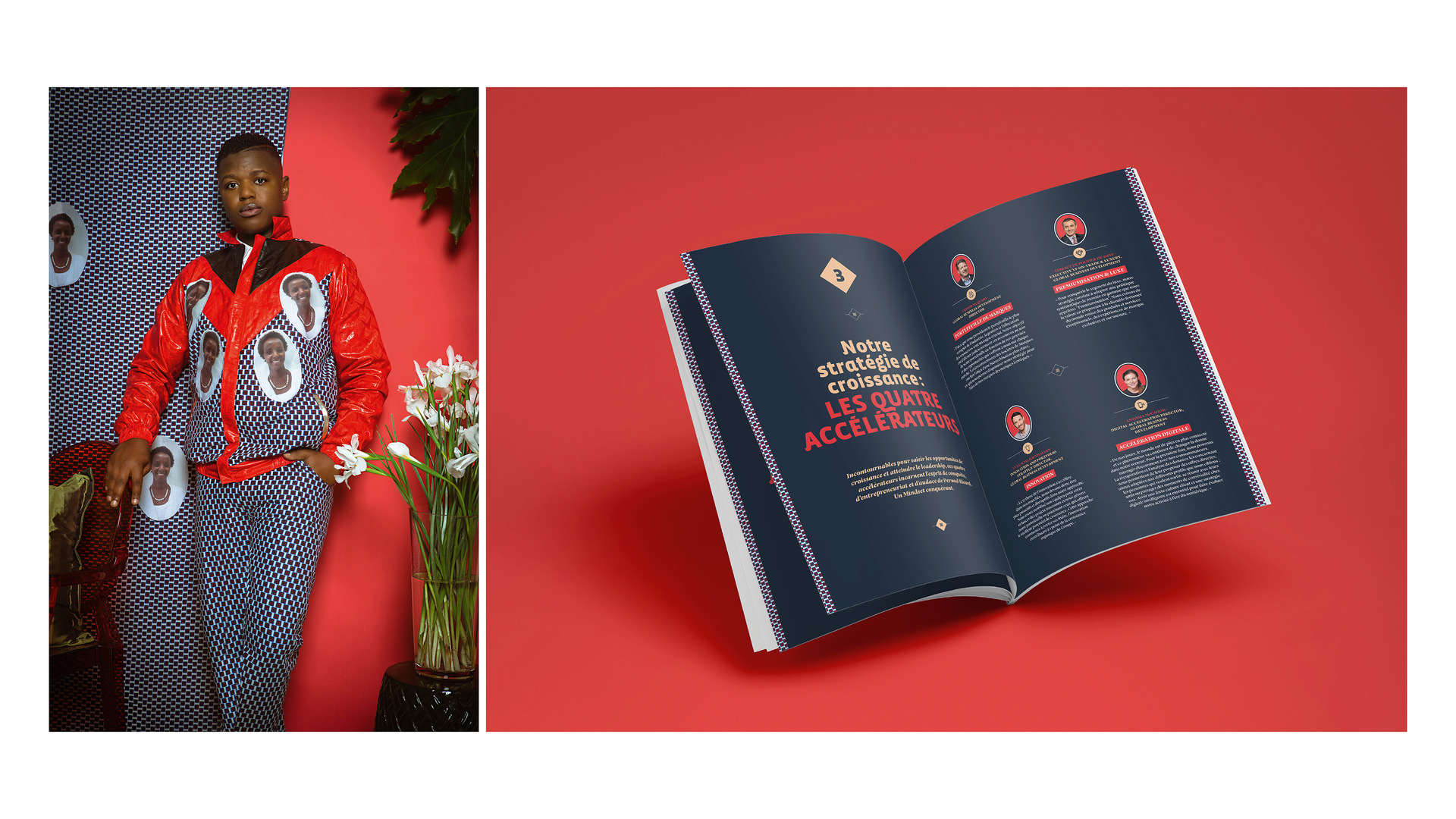 Under the title “Mindset”, the 2015/2016 annual report of the French wine and spirit company Pernod Ricard dedicates itself to its brand promise to be a “creator of conviviality”. Expressed by the Senegalese photographer, Omar Victor Diop, Africa sets this year’s mindset. With the photos of the company’s African collaborators, the imagery expresses the richness of urban Africa and highlights the company’s strategic targets for the future. The overall layout stands out due to its geometric patterns and creates a suitable framework for each individual photo through the use of extensive areas of colour.