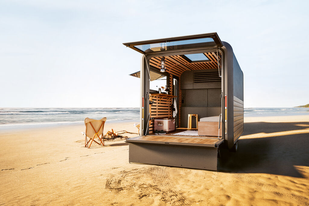MIO SPACE is a modular mobile living system for year-round use. Its minimalist design and clear geometry allow it to blend into a variety of living environments and natural settings. The shell is minimalist and weight-optimised. Interior and exterior materials and functional elements can be combined in various ways. The modular concept allows for individual configurations in terms of size, equipment and usage scenarios. Materials such as recycled aluminium and special recyclable composite materials underline the ecological claim.