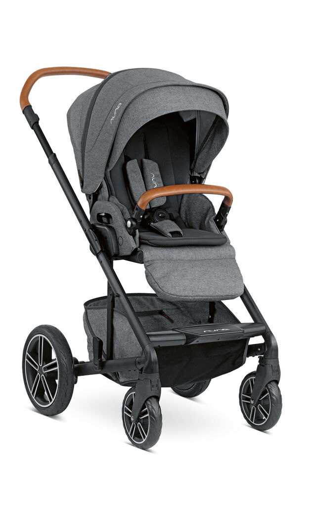 MIXX is a versatile pushchair which offers four modes: it can be used with a carrycot or an infant car seat and as a forward or backward facing buggy. The pushchair has a one-touch brake and lockable front wheels; it can be easily steered with one hand and folded up quickly and compactly. The push bar and bumper bar are covered with hand-stitched, brandy-coloured artificial leather. MIXX also has a removable sun canopy with a UV protection factor of 50+ and a window of mesh fabric.