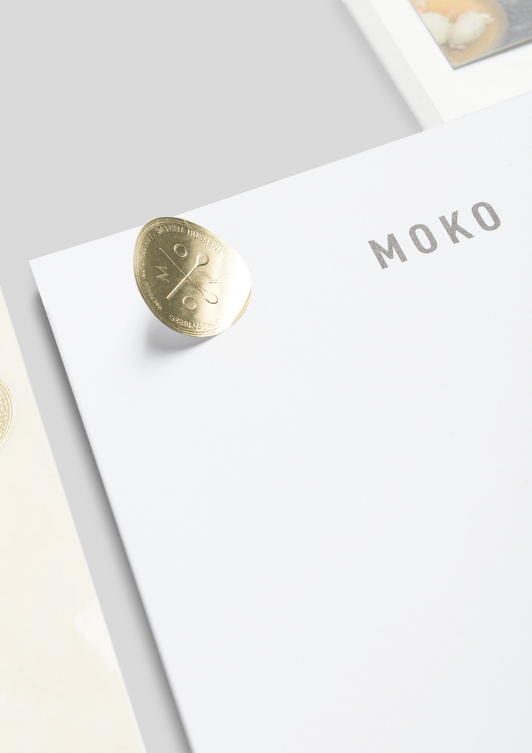 The new corporate design of Gabriele Hussenether’s culinary school and event location highlights sophisticated quality standards. The overall impression plays an important role in successfully attracting companies and private individuals who would like to host their events at this place. This thought served as the basis for the unobtrusive high-quality MOKO corporate design. The application is consistent across all areas: from outdoor advertising to notepads and labels, and from premium cookery course folders with brass clips to business stationery. In addition to the minimalist word mark, a signet is used, as a golden sticker or in printed form, to visualise an uncompromising commitment to quality.
