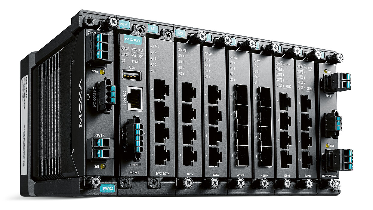 The Moxa ioPAC 6500 Series, also called the Intelligent Integrated Node (IIN), is a modular controller for automation. Its flexible backplanes allow for customised module configurations to meet specific operational requirements. Each unit is clearly labelled (PWR, COM, CPU, IO) to simplify installation, while a poka-yoke design prevents incorrect assembly. Thanks to tool-free installation using the release button, the modules can be replaced quickly. The I/O modules feature clear position marking for easy identification.