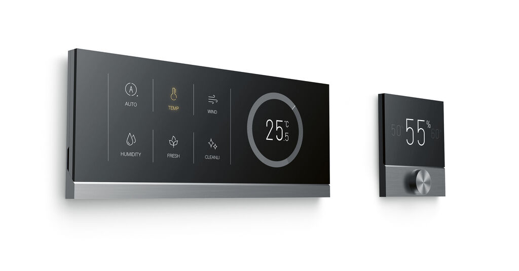 MRC enables convenient control of air conditioning systems. The flat, rectangular shaped main control unit is installed centrally in the living room. It allows users to monitor and control all installed air conditioning units via the intuitively designed touch display. The square sub-controllers can be installed in other rooms for flexible adjustment of the desired cooling output via a rotary knob. The purist appearance of MRC integrates unobtrusively into different interiors.