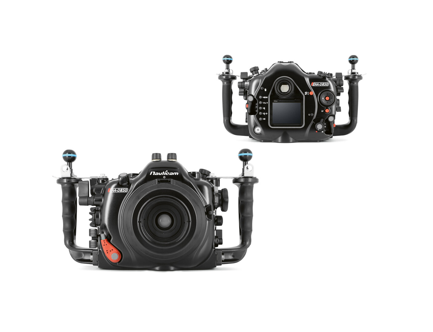 The NA-D850 is the latest release of the underwater camera housing for the Nikon D850. It features a patented port-locking system that is trendsetting within the industry. A considerable portion of the development process was focused on rendering the housing user-friendly. As such, the diver can quickly reach the most essential control elements of the camera from the rubberised handles. In addition, keys and controls have been dimensioned generously so that they may be operated safely with gloves as well. Important keys are highlighted in colour and can thus be located faster underwater.