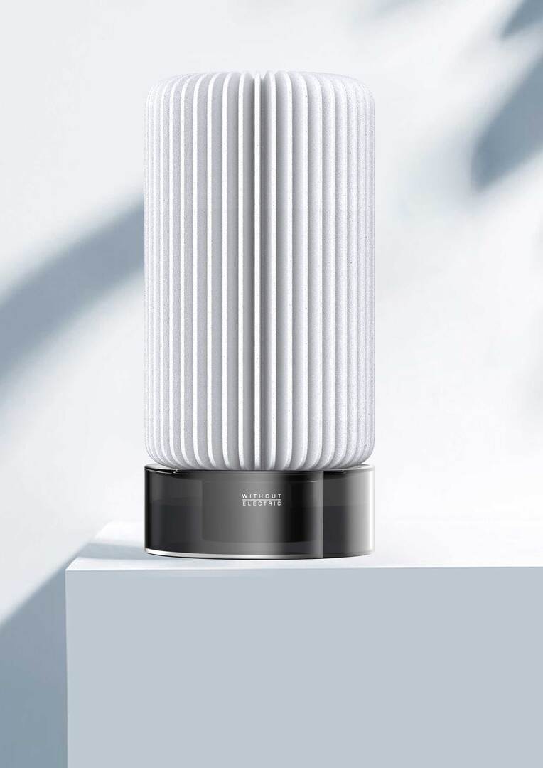 This humidifier is made up of two parts: a clear water box at the bottom and clay at the top. Users can always tell how much water is in the humidifier because it has a transparent tank. Simple and versatile, it embodies minimalistic beauty. The clay humidifier is intended to be reusable, energy efficient, and environmentally friendly.