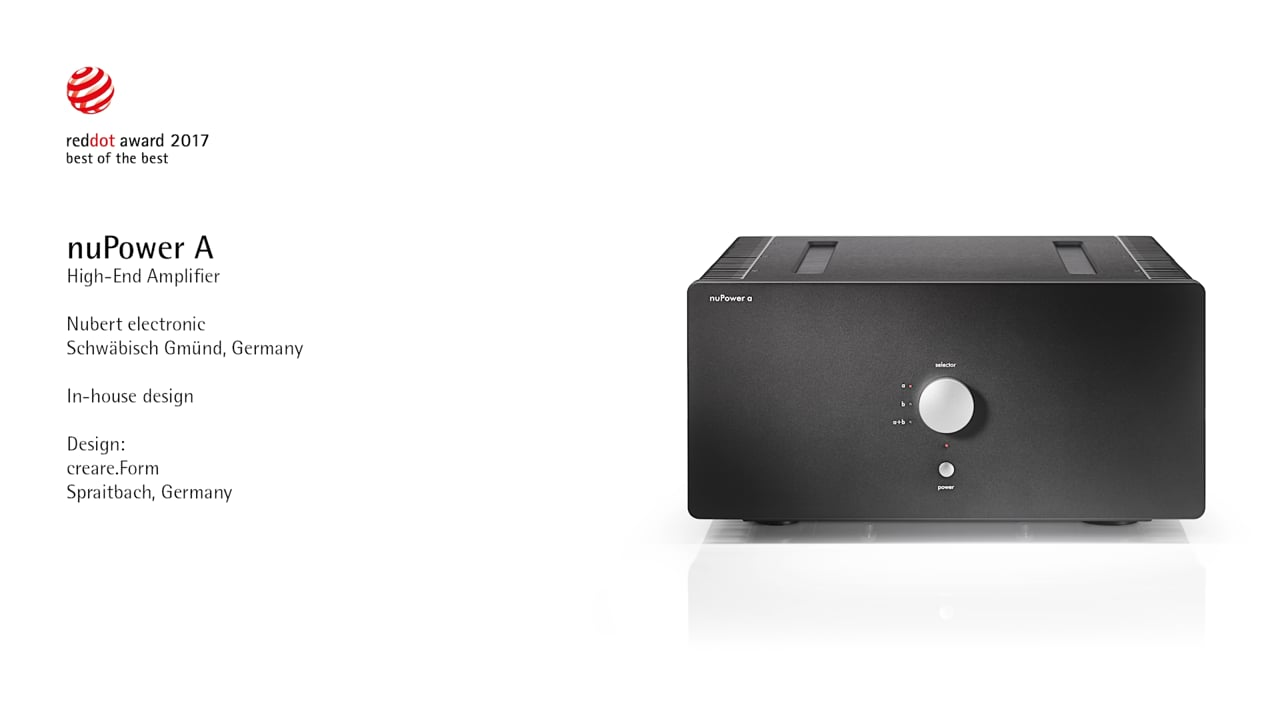 The high-end power amplifier nuPower A is marked by stringent purism and a design perfectly executed to the last detail. An expression of high design craftsmanship, the unit embodies just the right combination of dimensions and performance qualities focused on simplicity. One can immediately perceive the passionate diligence that guided the development process. The formal integration of the cooling fins has also been solved optimally with regard to effectiveness. The user elements convey the sense of an outstandingly pleasant feel.