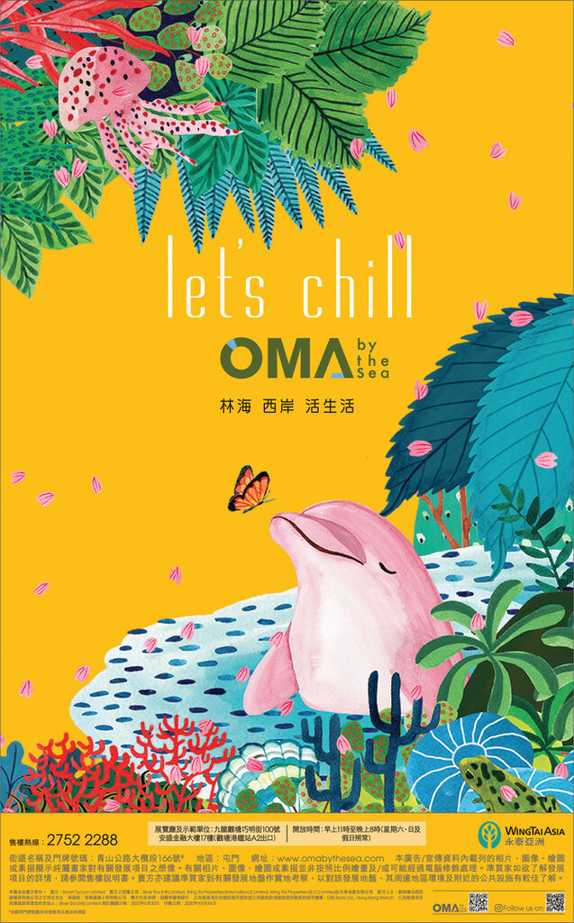 Against this background, a brand identity was developed that fundamentally differs from projects that are primarily aimed at mature investors and therefore want to convey trustworthiness through photos showing attractive people in luxuriously furnished surroundings. Instead, the unique selling proposition of this project – the location surrounded by sea and greenery – is placed centre stage in the brand image. Powerful and colourful illustrations are thus used on billboards and buses, in advertisements and in print media, as well as on the internet, all showing people who do sports and animals such as seals, otters and dolphins in relaxed poses on the beach and in the midst of nature, set against a bright yellow background. Together with the slogan “Let’s chill”, this creates a strong contrast to the typical advertising of other Hong Kong residential properties, which are always located within the city and focus on luxury and a cosmopolitan lifestyle. Unusual for the industry, the imagery of OMA by the Sea thus attracts attention and piques curiosity. Buses were specifically chosen as advertising media, as they drive around Hong Kong’s bustling Tsuen Wan and Tuen Mun Districts, as well as in the city centre where the young target group lives and works. The use of this playful illustration style in all marketing materials, including an animated short film, has resulted in a strong synergetic effect that strengthens the advertising message across the various touchpoints of the brand. Ultimately, 210 of the total of 268 units were sold on the first day the sales office opened. Most of the buyers are millennials, more than half of them between 26 and 35 years old.