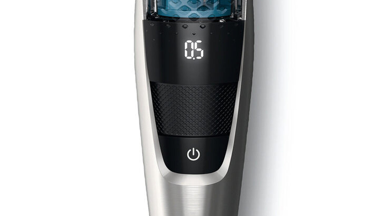 This shaver treats the beard with only a single blade. With its weight and design, the device fits ergonomically well in the hand. It can move in long strokes in all directions without the need for applying much pressure. Contours are precisely defined. There is an inconspicuous battery plug on the lower side. The shaver comes with three additional attachments for different trim lengths.
