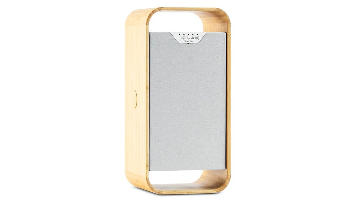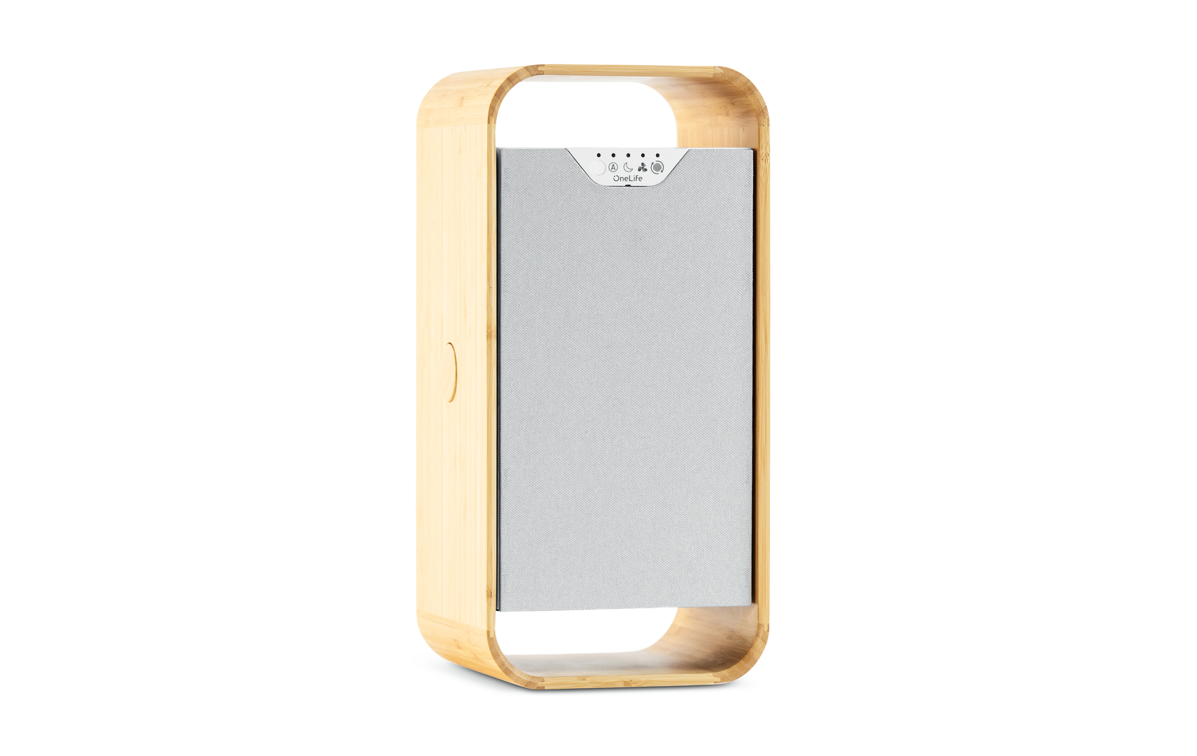 The OneLife X uses an innovative plasma filter technology to clean indoor air. The filter system is characterised by low-energy consumption and a reusable filter unit. It can be cleaned by simply rinsing it under running water or putting it in the dishwasher. An optimised axial fan generates a precise and targeted stream of air. It is controlled via a control panel on the front, which also displays the air quality. The OneLife X is made from bamboo and recycled plastic.