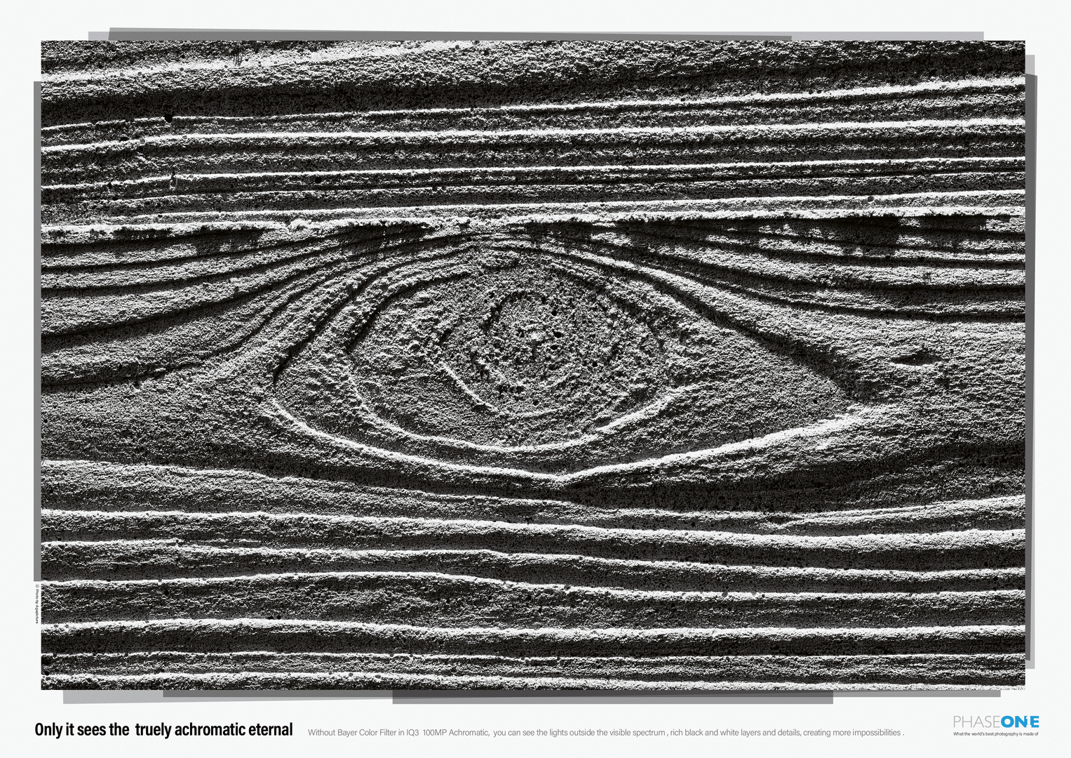 This print campaign convincingly demonstrates the performance of the Phase One IQ3 100MP Achromatic. The camera without a colour filter takes light-intensive black-and-white photos and allows motifs to be portrayed with impressive contrast. The key visuals of the campaign are different aerial pictures of landscapes where the structures on the ground resemble the contours of an eye. The aesthetic motifs are real eye catchers which attract attention and demonstrate the product benefits of an achromatic camera system.