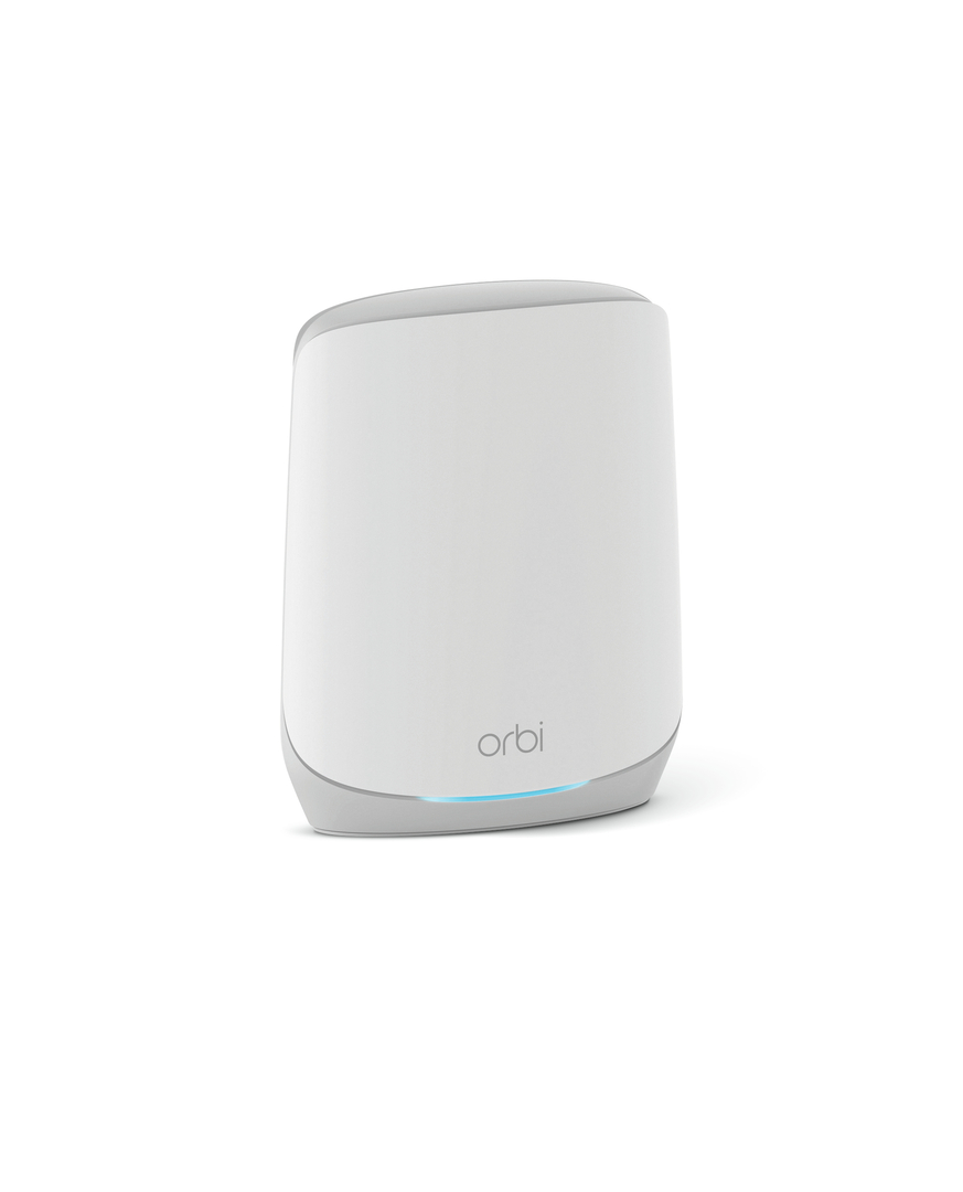 The white housing of the Orbi RBK760 by NETGEAR combines the aesthetics of modern ceramics with a technological form to blend unobtrusively into any living environment.