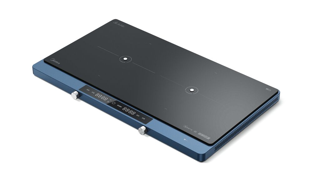 The concept of this induction hob aims for use at celebrations or social gatherings. The clean, compact design language, the elegant interplay of black and blue, and the discreet control elements result in an appealing product. For easy preparation of different dishes, the induction hob is equipped with two independently controlled heat sources.