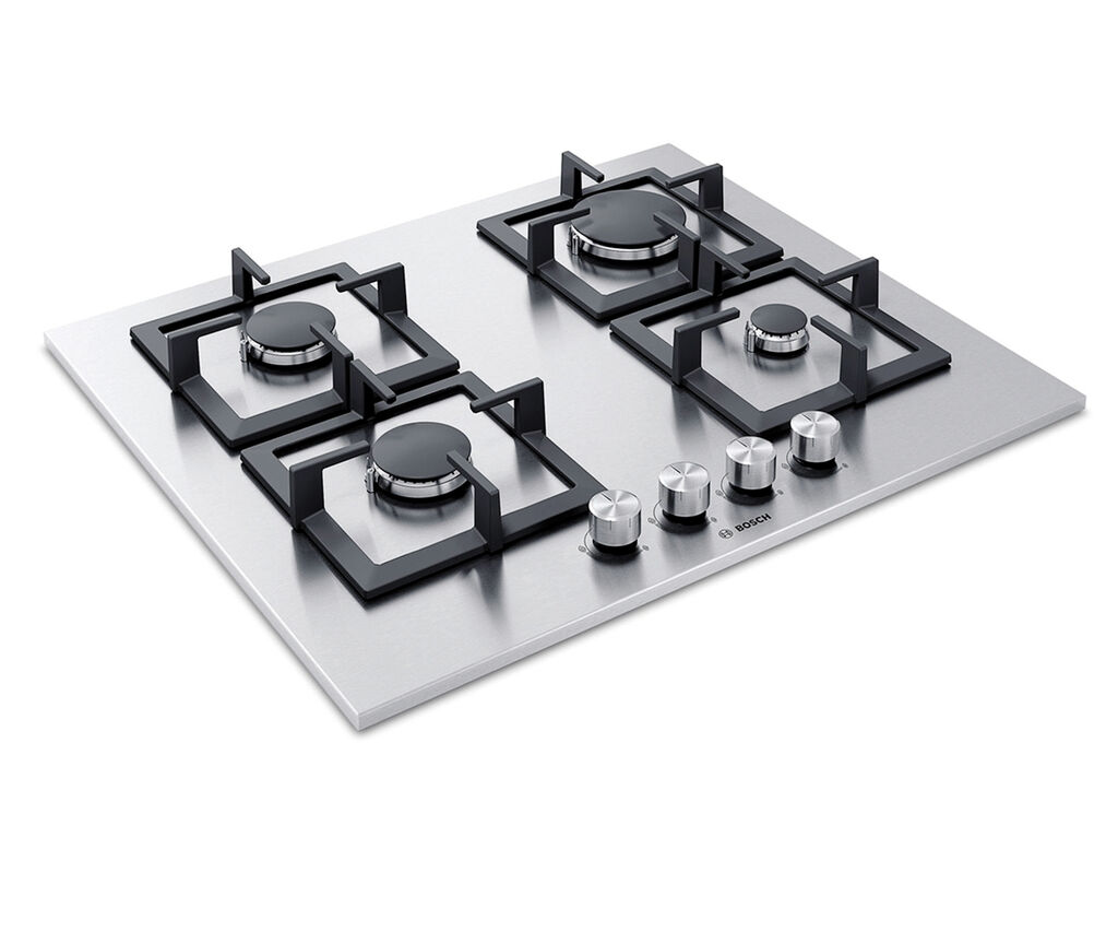 Precisely formed design details, such as the metallic control knobs and the cast iron fixings, demonstrate haptic value. Energy efficient burners and dishwasher-safe pot supports are just as striking as the flat hob panel, which can either be flush with surrounding surfaces or integrated into the work surface in a classic additive fashion. Thanks to the clear style, it can be harmoniously integrated in a modern kitchen scenario.