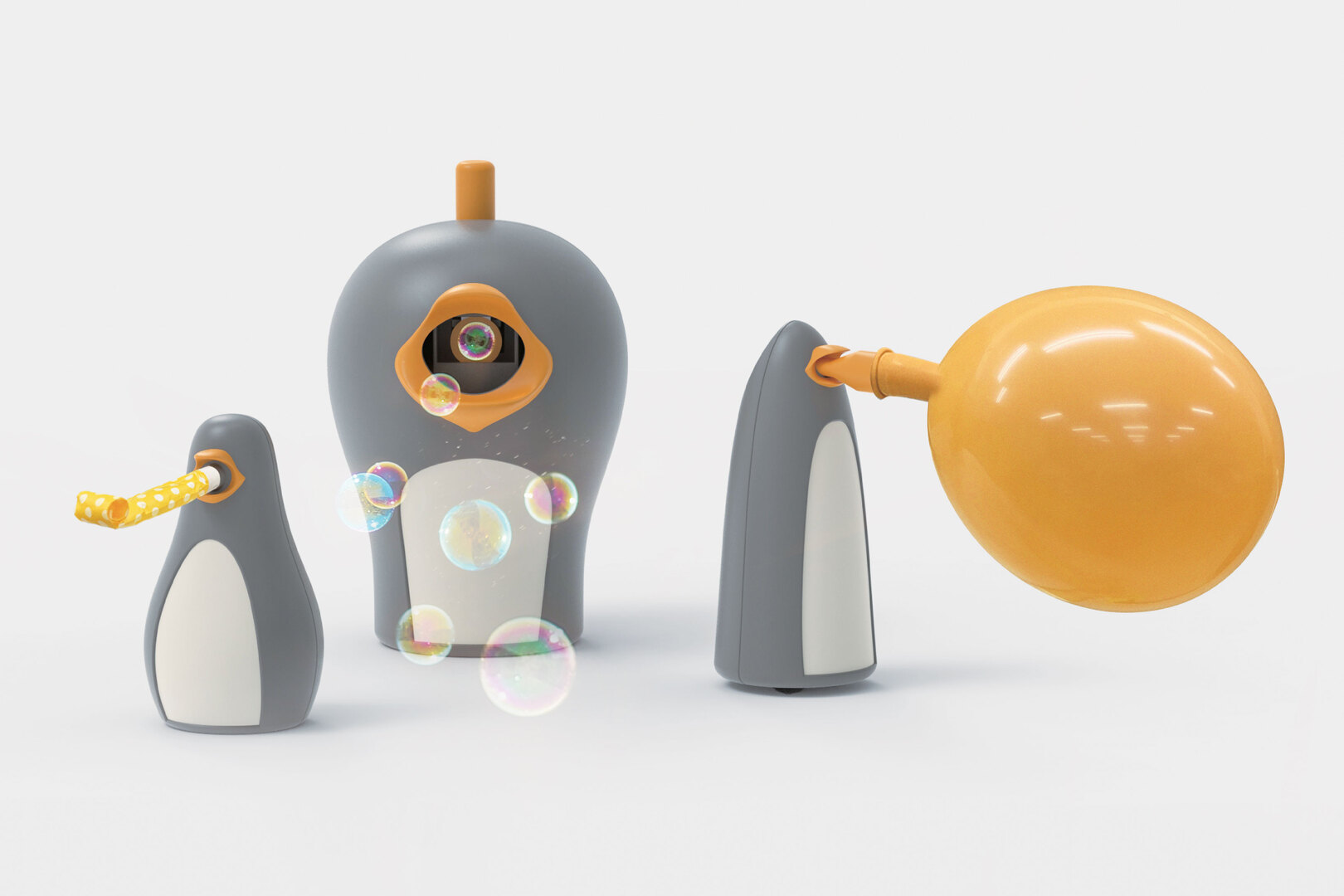 Pengoo is a collection of asthma-related care products for children. The set includes three breath training and testing products, a mouthpiece, and an accompanying app. Each product corresponds with a specific exercise: pursed-lip breathing, belly breathing, and the peak flow metre for breathing testing. Pengoo aims to transform the mundane routine of breathing exercises into something engaging for children. Within the app, the game sends a penguin on a journey to find medicine for asthma. Children can interact with the characters by exercising familiar blowing actions like blowing balloons, bubbles, and the party blower to complete daily tasks. In assisting the penguin in the game to obtain the medicine, it also naturally engages children in using their belly muscles, thereby training and testing their breathing. Red Dot Award: Design Concept | Concept | Childhood