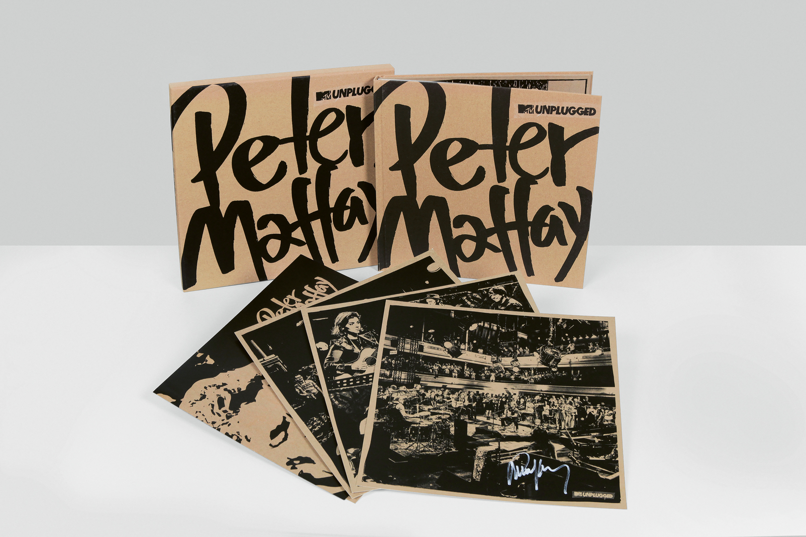 The packaging for the music by artist Peter Maffay, here recorded as part of the iconic show “MTV unplugged” by the television broadcaster MTV, reflects the unpretentious and analogue character of the music and the recordings. Inspired by the musical core concept “unplugged”, the design presents itself in a reduced visual appearance to convey a genuine, handmade appeal. All text was handwritten and, instead of using colour pictures, illustrations in black and white show the band and scenes from the live concert. The printing was done on uncoated paper with a cardboard effect.
