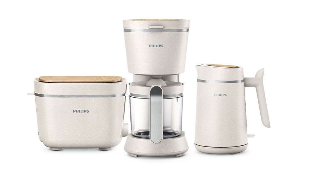 The Philips 5000 Series – Eco Conscious Edition makes impressive use of recycled materials, which give the breakfast set a natural appearance.