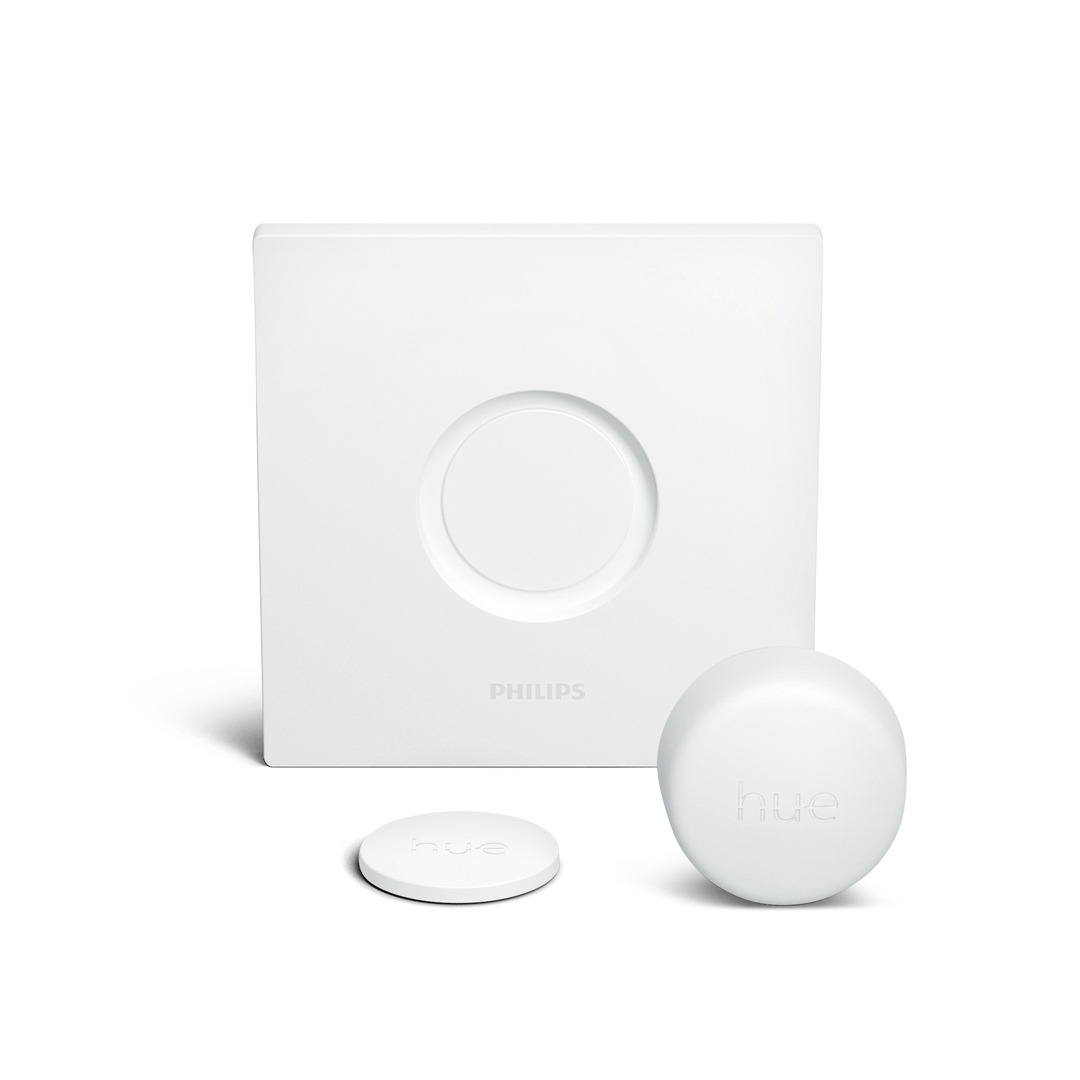 The Philips Hue Smart Button serves as intelligent lighting control for the Hue lighting system and facilitates very intuitive operation. The lights switch on at the press of a button, and the system automatically activates the lighting setting recommended for the corresponding time of day. By pressing the button longer, the light dims or becomes brighter, while pressing several times triggers saved lighting scenarios. The button can be mounted, fixed by a magnet or used as a mobile device.