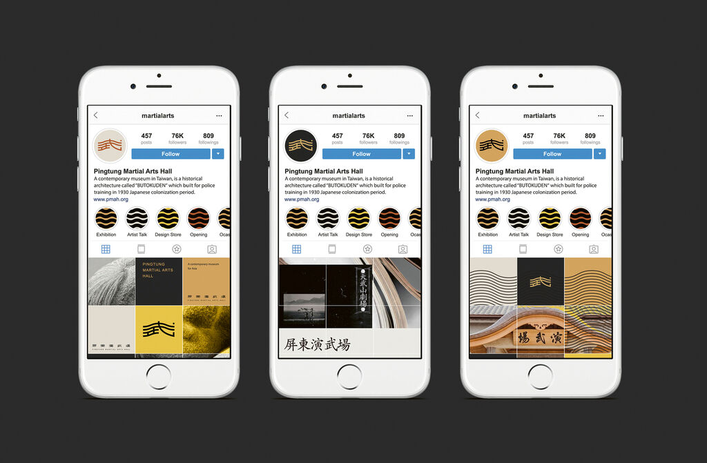 The corporate design for this contemporary museum was developed to create an easily recognisable identity for targeting a huge audience in Asia. The logo comprises both the Mandarin character for martial arts and an abstract illustration of the museum’s distinctively curved roof. In addition, a flexible system of patterns was developed using the building’s architectural details as inspiration. The design focuses on appreciating the architectural appearance and showing how it holds the essence of artmaking. This approach allowed the design to be applied broadly across other media for the purpose attracting more online followers and museum visitors.