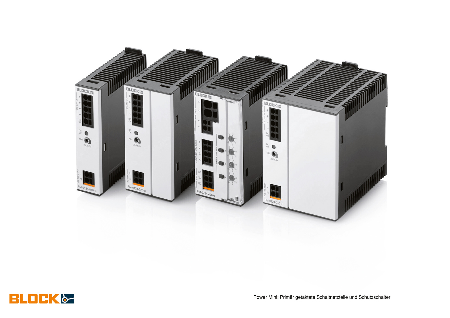 The Power Mini device series ensconces efficient switched-mode power supply in slim plastic cases, covering the low to medium power range from 25 to 100 watts. The grey colour was developed under a variety of lighting conditions in a light laboratory and derives from the well-established blue colour of the Block brand. The clear structure and arrangement of the connections and controls provide an enhanced degree of functionality and ease of use, in addition to fostering a high-quality impression.