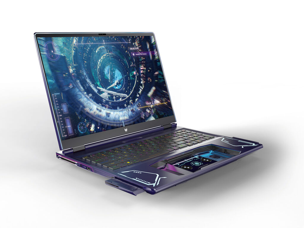 Predator Project DualPlay is a gaming laptop with an integrated, detachable touchpad controller unit that can be split into two separate smaller controllers for multiplayer games. Two extendable high-fidelity speakers provide immersive sound in controller mode. Dynamic RGB lighting on the casing, keyboard and controller enhances the gaming experience. The seamless switching between solo and co-op mode makes Predator Project DualPlay ideal for travelling and encourages shared play beyond classic PC boundaries.