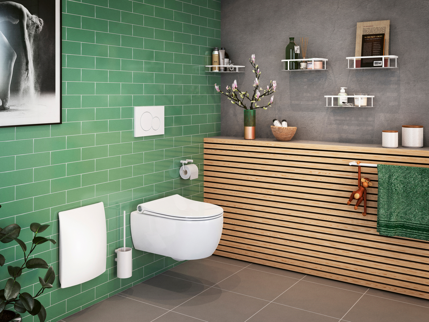The Pressalit Wall Bin 1090 is a bathroom waste basket for wall mounting with an easily removable inner bin made of recycled plastic. The unit has a soft-open magnetic closure that can be opened with a simple tap while sitting or standing and remains open until tapped again for convenient waste disposal. It can be used with or without a bin liner. The jury was impressed by the simple, practical design: Particularly in small bathrooms, a standing waste bin is often a disruptive factor that also makes cleaning more difficult. In addition, a waste solution that can be easily operated with just one hand is particularly useful in the bathroom.