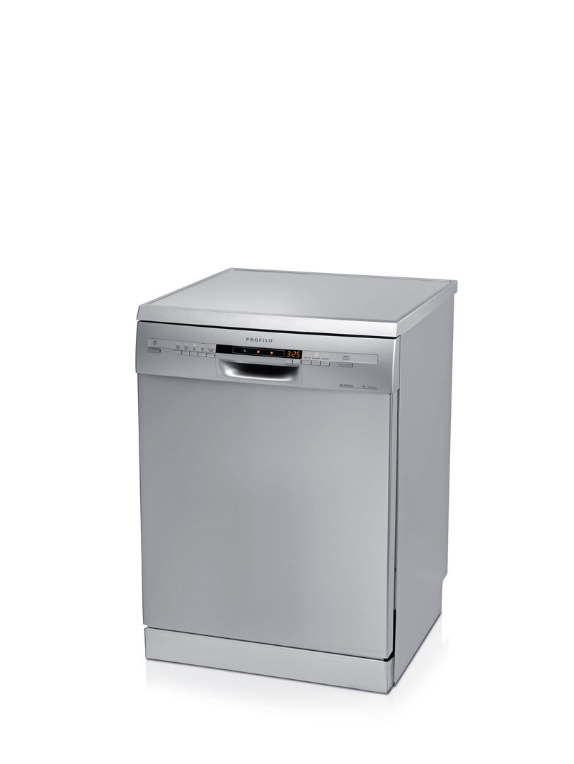The harmonious interplay of matt silver coated surfaces and brushed stainless steel distinguishes this free-standing dishwasher. Clear lines and an intuitive user interface with direct selection buttons and backlit symbols characterise the control panel. The key element is the ergonomically shaped, recessed grip. Convenience is provided by six programmes, a start timer and the special functions VarioSpeed and “half load”.
