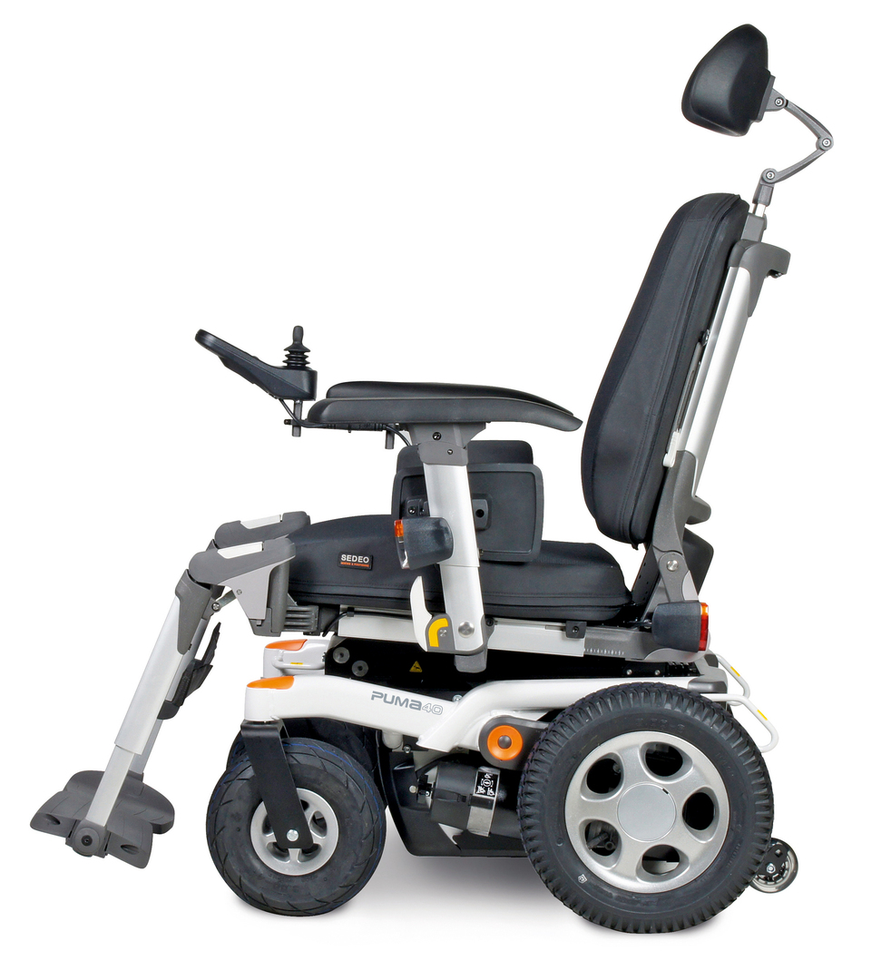 The Puma 40 power wheelchair sets new standards for indoor and outdoor use. It can be navigated safely and comfortably in any environment, thus providing the user with the highest degree of independence. Its compact dimensions and high manoeuvrability make this wheelchair highly suitable for use in restricted spaces. Another special feature is the independent suspension system, which absorbs both shocks and vibrations. Furthermore, the functional and freely adjustable Sedeo seating system offers high seating comfort.