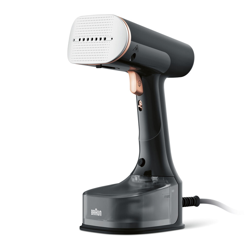 QuickStyle 7 enables the convenient vertical and horizontal de-wrinkling of garments. Thanks to FastSteam technology, a continuous supply of powerful steam is guaranteed, while the convex soleplate glides effortlessly over buttons and pockets. In addition, the device is equipped with iCare automatic temperature control. The ActiClean Easy System ensures uncomplicated descaling and therefore a long service life. Compact in design, the black surface of the appliance is finished with elegant bronze-coloured accents.