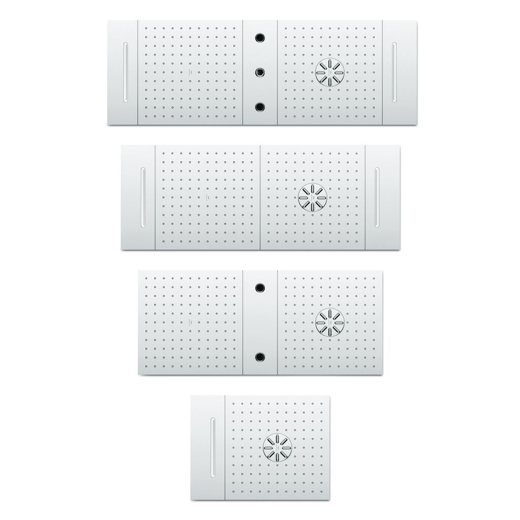 Rainshower AQUA Ceiling Showers is a modular shower system. The flush-mounted modules can be exchanged, extended and individually combined to create a unique ceiling shower. The modules also give users the option to create flexible arrangements: thanks to their angular form and different lengths, they can be arranged vertically, horizontally, asymmetrically and even around corners. With their reduced, clear language of form, Rainshower AQUA Ceiling Showers embody a stylish addition to modern bathrooms.