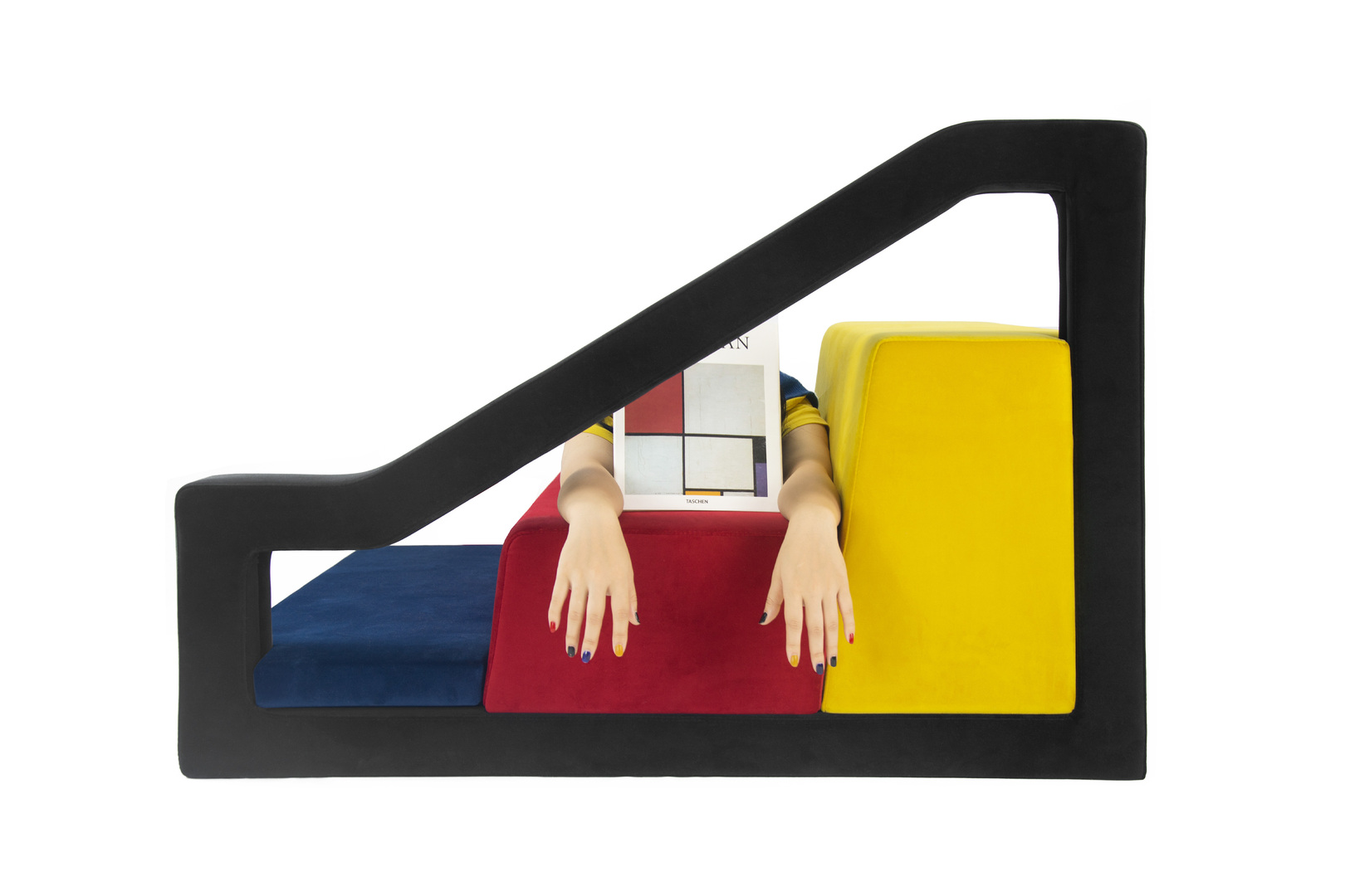 What do you call stairs that are not used for climbing? It is not uncommon for people to use the stairs outside public buildings as a makeshift seat while resting against the handrail. Inspired by this scenario, the steps and handrail of this sofa have been given new functions. The steps are converted into proper seats by extending them and lowering the height of the handrail to serve as the back of the seats.