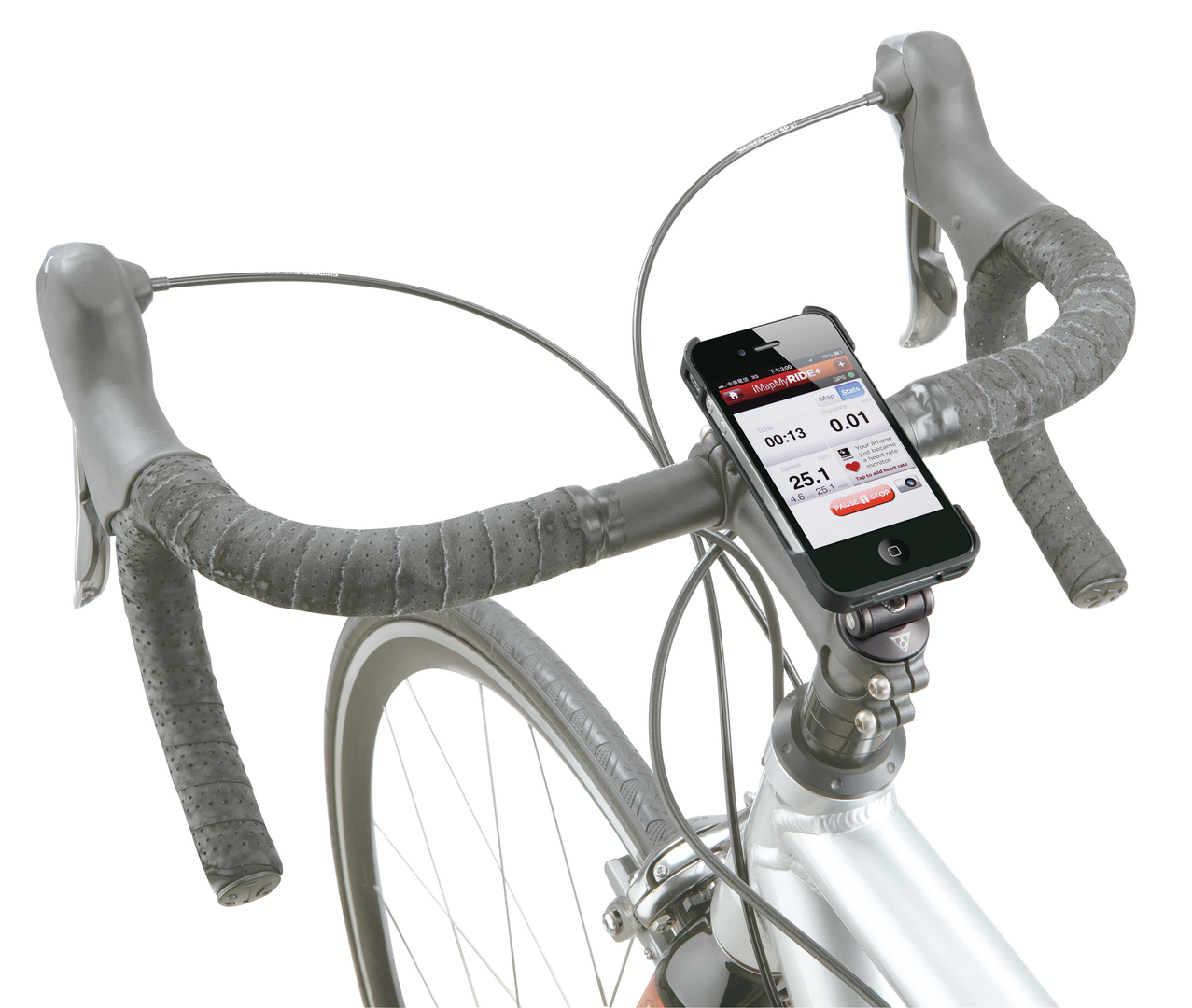 The RideCase is comprised of a plastic cover and a light carbon body, which positions the iPhone 4/4S at the centre of any bicycle cockpit. It allows easy access to various functions – including a camera, GPS, and music – while riding the bicycle. The angle-adjustable stem cap or handlebar mount allows viewing in landscape or portrait orientation. Due to the reliable QuickClick system, the device can be mounted in just a matter of seconds.