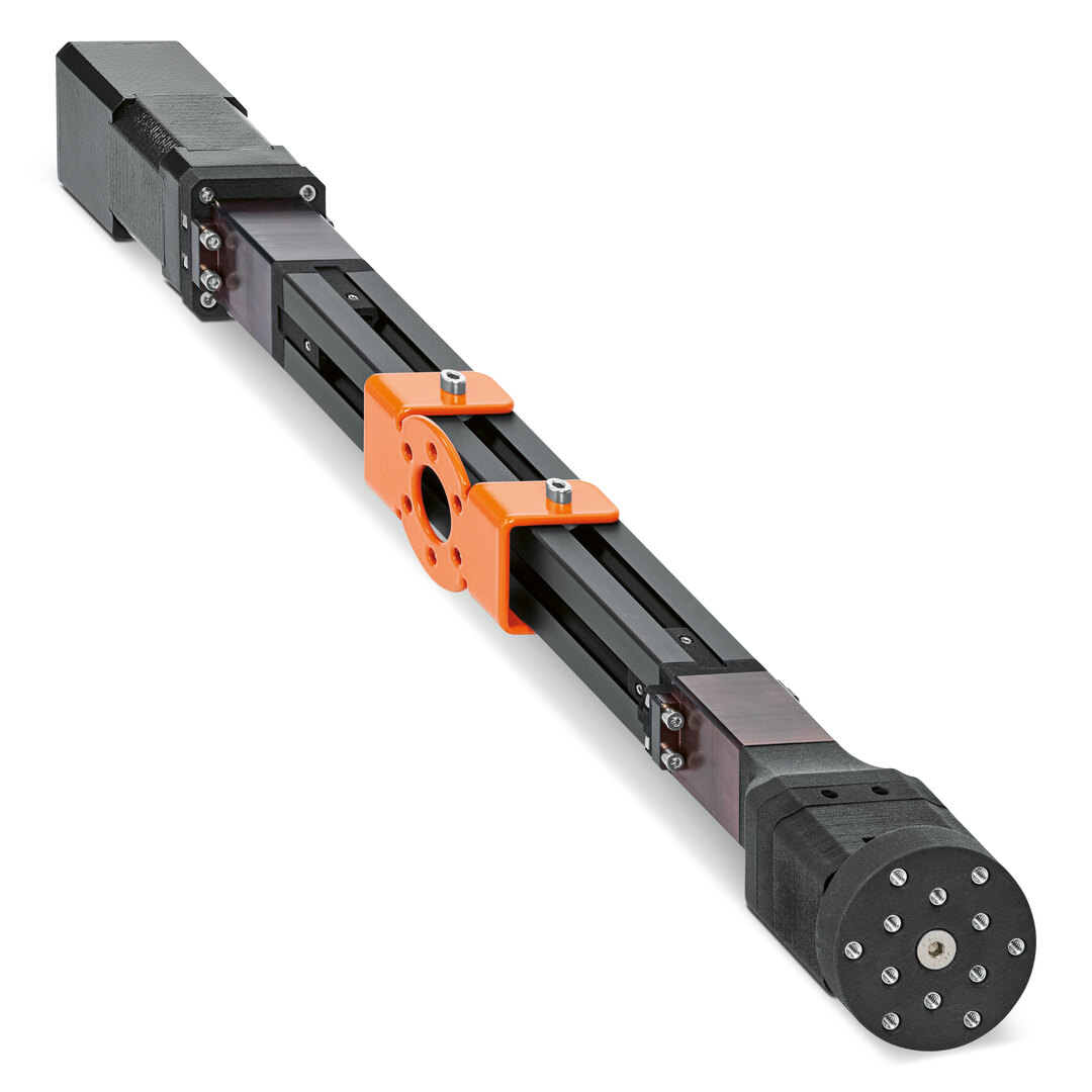 The electromagnetic robot arm robolink RL-DQ can be configured easily and precisely. The newly developed fifth axis – featuring a rotary axis with stepper motor and an output drive plate with INI switch for zero point definition – ensures the optimisation of the system. The robot arm is available in two options with maximum payloads of 1 kg and 3.5 kg. The axial distances and the articulated arm geometry can be modified by adapting the connecting parts.