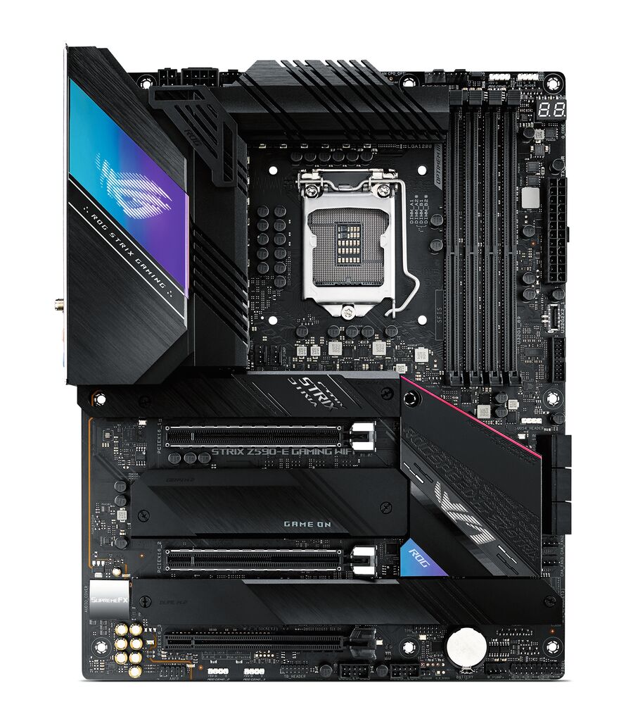 ROG STRIX Z590-E GAMING WIFI is ideal for installation in cases with a transparent side panel with its accentuated chipset cooler and integrated M.2 heat sinks with RGB lighting. The motherboard offers an optimised power supply and cooling so that the system can be reliably kept at temperature even under full load. The fans are intelligently controlled to keep noise levels as low as possible. Dual 2.5G Ethernet and Wi-Fi 6E are available as network interfaces.