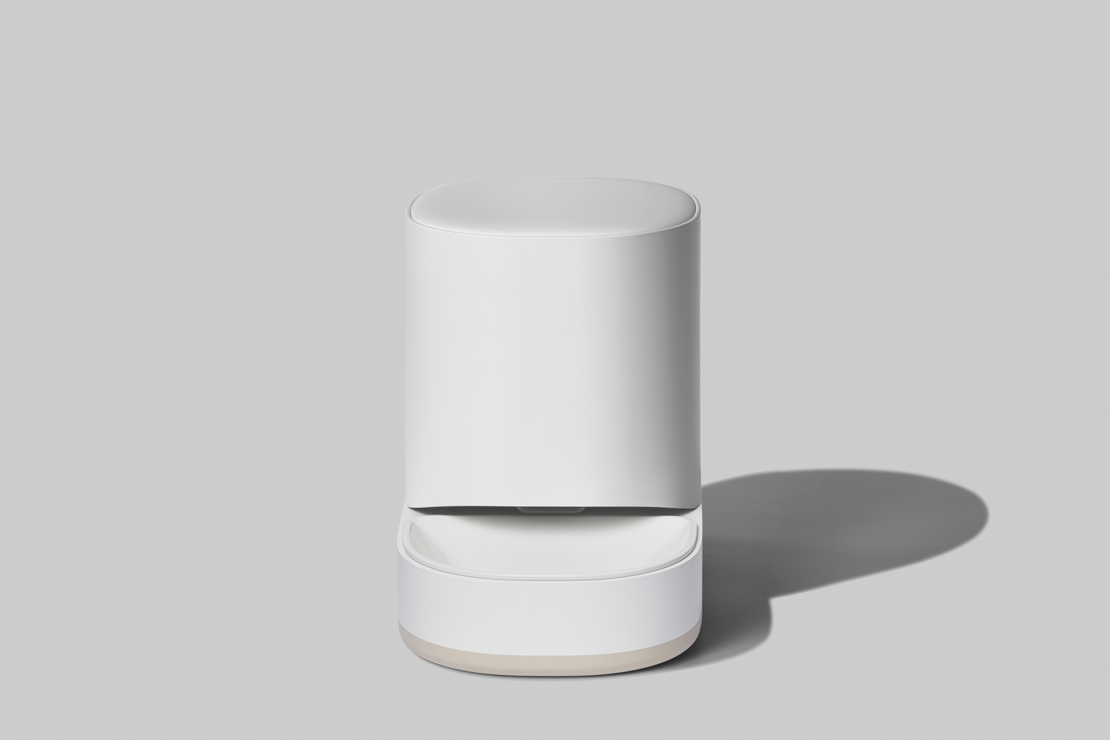 The Safe & Smart Pet Feeder allows for automatic feeding of pets when the owner is not at home. A vacuum structure keeps the food fresh, while sterilisation by UV light ensures cleanliness. Weight sensors measure food intake and adjust the amount of food as required, which is particularly helpful with pets that require diet management. The low centre of gravity of the feeder ensures stability in the event of impact and the aesthetic colour scheme blends in well with the interior design.