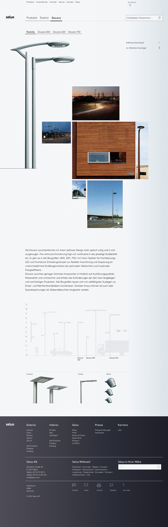 As part of the repositioning of the brand, the selux.com website has been redesigned. Since it is essentially aimed at architects and light planners, the focus of the site is to provide tools that give rapid access to specific data on over 2,000 products. An intelligent search engine, which can be combined with a filter and a dynamic product selector, allows the user easy access to all planning tools for lighting solutions in just a few steps. The information may be subsequently stored in a personalised area for further processing.