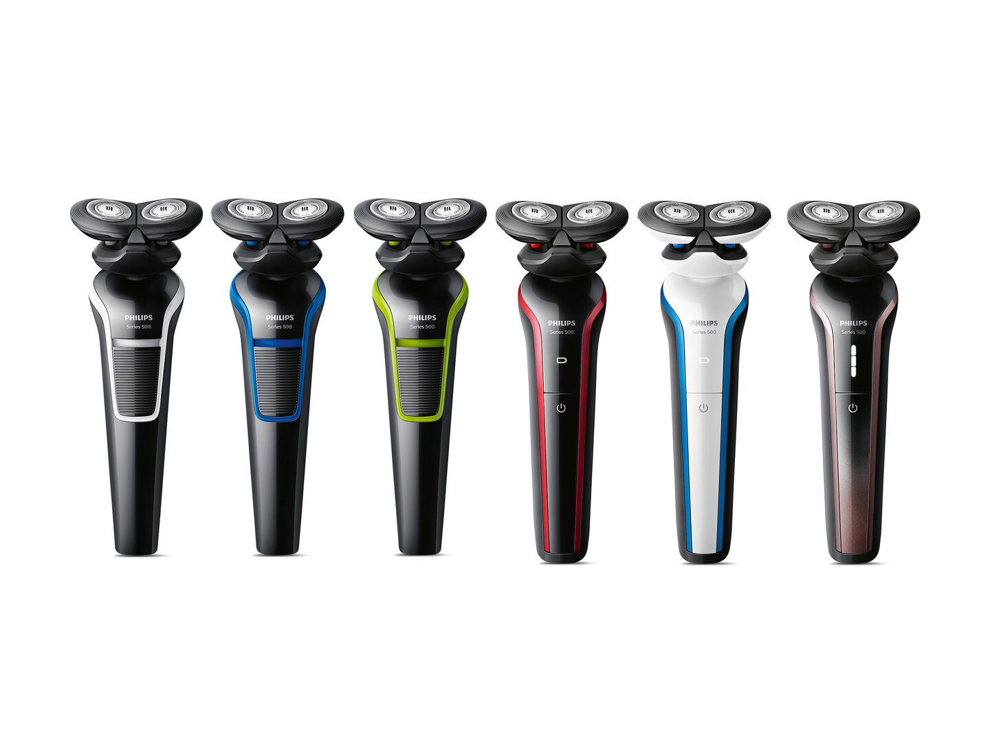 The shavers of the 500 series stay close to the skin during shaving thanks to their curved, flexible head and reliably remove facial hair from even hard-to-reach parts of the face. Together with the softly rounded head profiles, the blade system with eighteen small blades reduces friction and thus prevents skin irritation after shaving. The sleek handle becomes more compact towards the head and allows for a safe handling of the device.