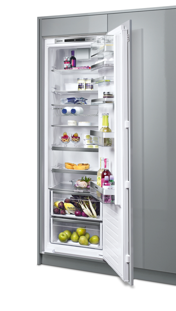 Its high energy efficiency and ergonomically conceived details such as pull-out bins distinguish this built-in refrigerator.