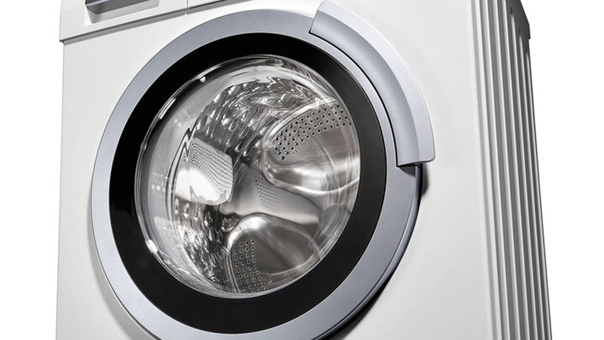The appearance of this washing machine is characterised by a clearly arranged interface. It is operated via a precise jog dial with an LED display and a generously sized TFT screen, which clearly and concisely visualises the current settings. The large-dimensioned door illustrates the high loading capacity of up to 9 kg of laundry. The smooth protective glass panel and the precise metal ring of the door enhance the high-grade impression.