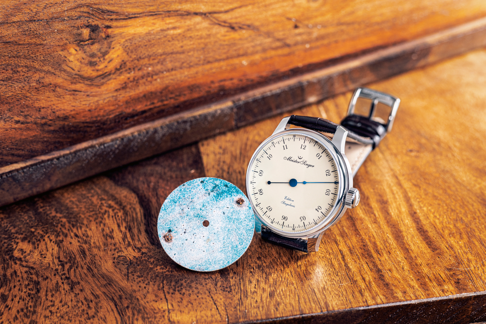 The limited Singularis Enamel Edition wristwatch combines the proprietary hand-wound MSH01 movement with an artfully crafted ivory-coloured enamel dial in a historical style. Numerals in a fine serif typeface and the single hand typical of MeisterSinger – here blued by heat – harmonise with the aesthetic borrowings from the history of watchmaking. The movement, however, meets sophisticated technical demands with a 120-hour power reserve and outstanding accuracy. The jury was impressed by the skilful combination of traditional craftsmanship – only a few artists remain who have mastered the enamelling technique – with state-of-the-art watchmaking technology.