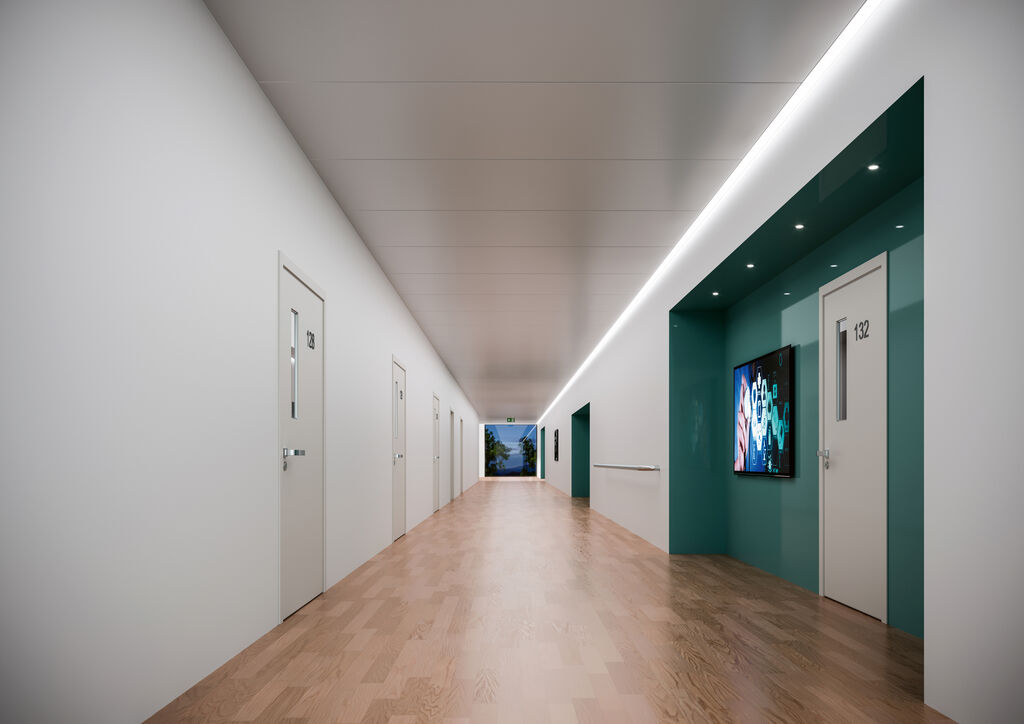 The smart SLOTLIGHT LynX activated light guidance system combines a linear lighting solution with digital navigation, signalling and location-based services. As a result, the system provides dynamic information to guide people or track machines in healthcare settings, care homes and other environments. Networked via Bluetooth or Wi-Fi, the lighting system integrates seamlessly into the architecture and can be installed around corners. It evaluates and visualises building data for efficient process management, creating added value for public institutions.