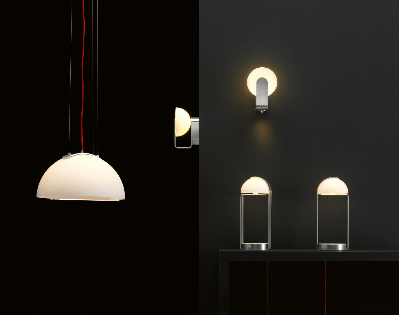This energy-efficient series comprises table, wall and pendant lights. Thanks to their satinised glass shades, all models emit a pleasant, warm white light. They are equipped with high-quality LEDs. The two table lights come with a touch dimmer. One version can be switched on / off and dimmed by touching the metal housing, while the other is controlled via a touch dim switch and offers the possibility to charge a smartphone inductively. This version also comes with a USB-port as well as a night light, which can be switched on and off separately.