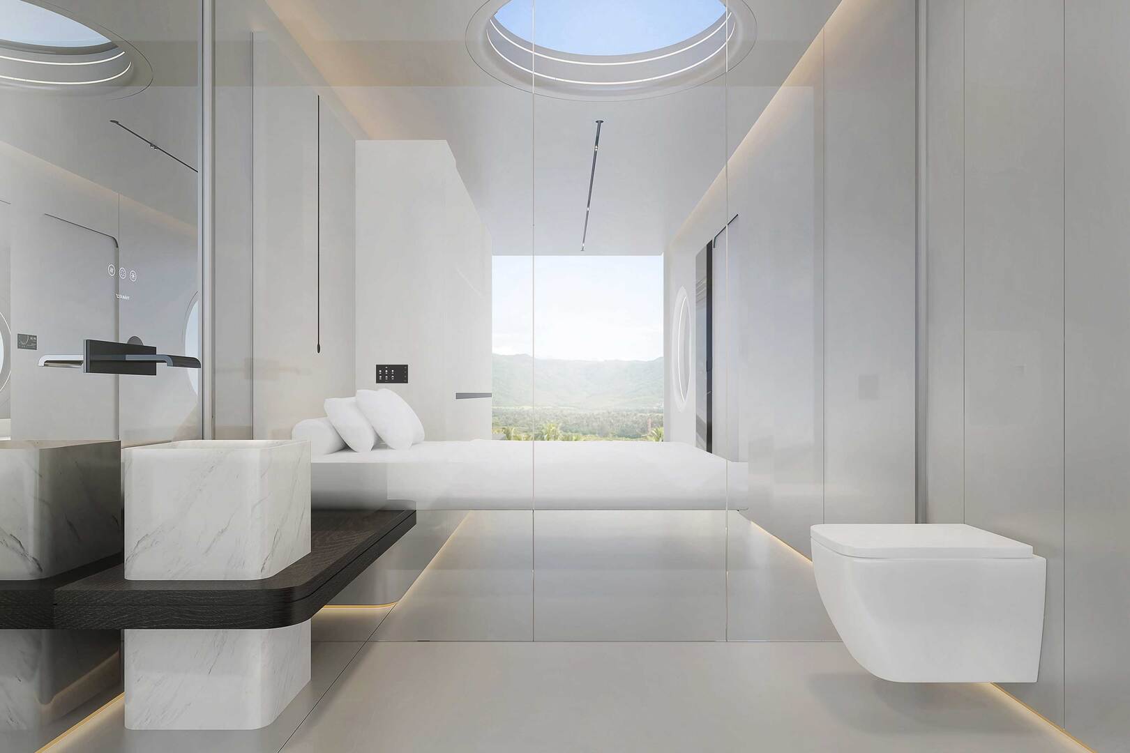 The internal water circulation system of the house enables automatic water circulation, filtration, and secondary use. The control panel displays water usage and suggests smarter ways to use it. Various smart sensors are installed throughout this smart home and they interact with users through the mobile app. To provide year-round comfort, the system automatically sets the room’s temperature to an optimum level based on external environmental conditions. Meanwhile, interior furniture and lighting are constantly shifting and adjusting to meet various usage scenarios.