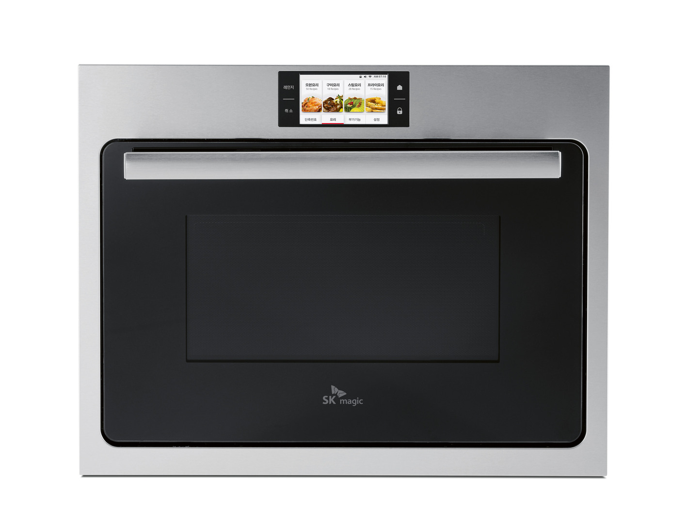 The particular design feature of this oven is its door, which is made of steel and has a form inspired by a traditional coal fire pan. The oven offers a steam cooking function for preparing low-fat and low-salt foods and settings such as convection, grill and microwave. By this means, 130 different dishes can be automatically prepared. A full-touch LC display, voice activation and Wi-Fi connectivity make operation simple and intuitive. The window is triple-glazed and protects from burning.