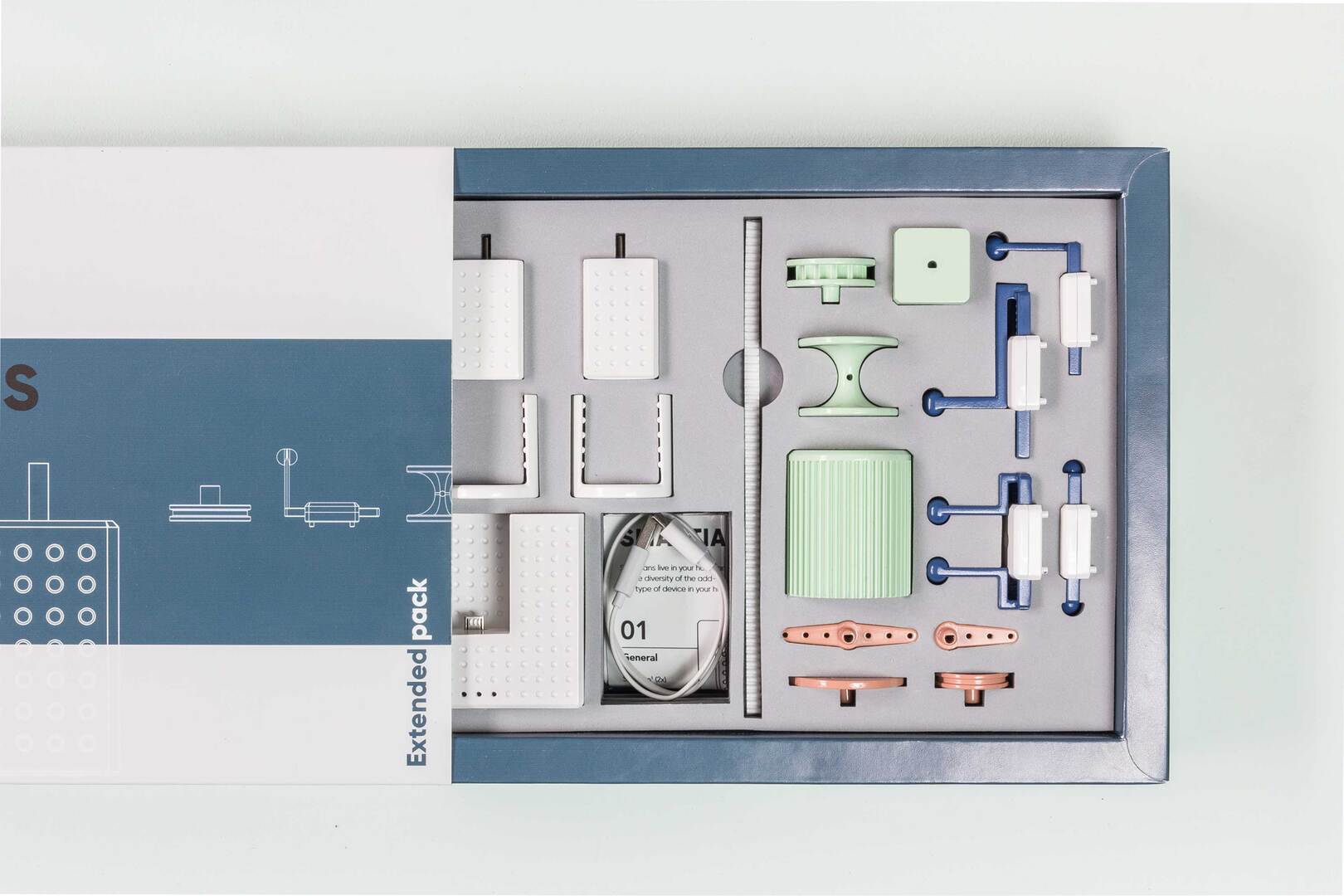 The series is easy to use thanks to an intuitive system of snap-and-fit grids. Its design can translate the motors’ rotational movements into other movements and directions. This enables users to remotely trigger actions by simply using their hands. The Smartians Hub is connected to the Cloud and controls all Smartians modules in the home.