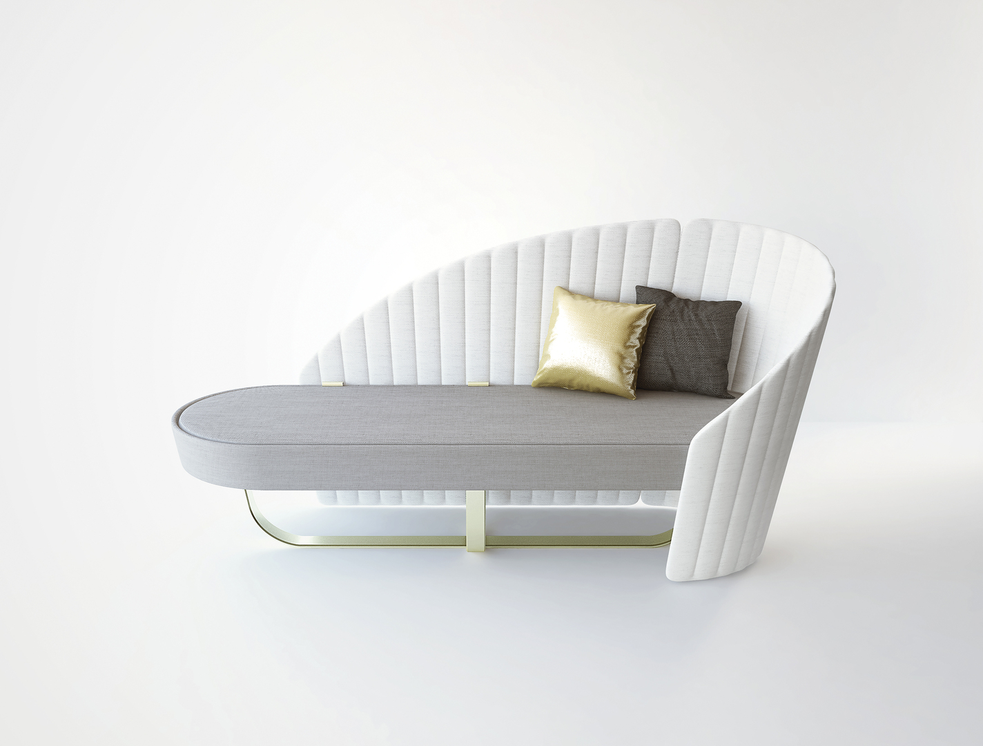 This modular, multifunctional couch is inspired by Art Deco forms and the seabed. The sofa is wrapped by a 'sink', of which design and functionality can be changed. The colour scheme and couch form are developed into two versions. The first version is set in a white and grey retro style with an emphasis on brass elements. The second version is set in dark grey and black, modern style with bright red accessories. This object allows the user to change its design and functionality and hence, change the mood of the room along with it. Red Dot Award: Design Concept | Concept | Furniture