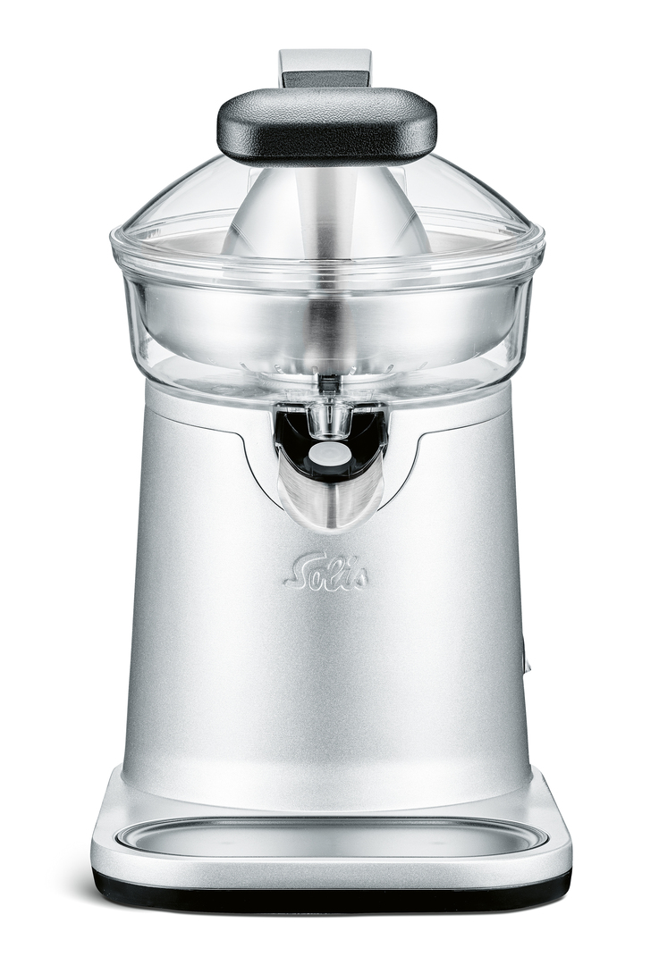 The SOLIS Citrus Press Station facilitates the pressing of citrus fruits of any size. For this purpose, the juice squeezer has an automatically rotating solid juice cone made of heavy aluminium. Depending on how much pulp is desired, there are two different sieves made of hygienic stainless steel, which are dishwasher safe like all removable parts. The plastic parts such as the transparent lid and the ergonomically designed handle are BPA-free.