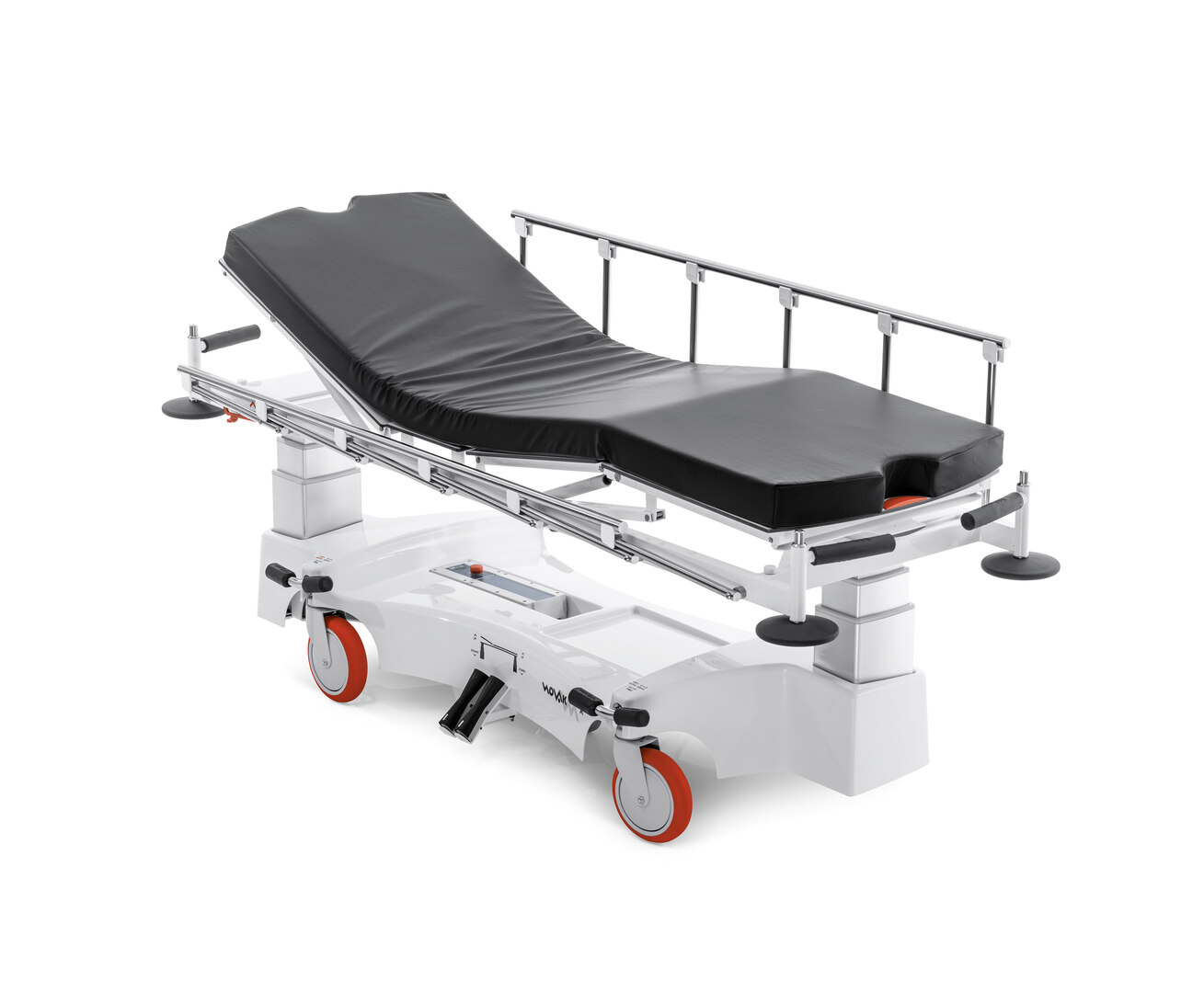The Stretcher X life-support trolley is a stretcher for all treatment phases in the emergency department: admission, transportation and examination. The innovative diagonal shape ensures optimal access to X-ray devices from all sides of the stretcher. The large reclining surface, permeable for X-rays, allows images to be made without having to move the patient. Thanks to its short wheelbase, the trolley is easy to manoeuvre and can turn on the spot.