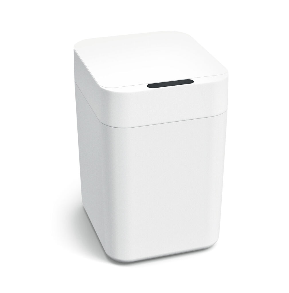 This trash can provides a hygienic solution for modern households. The modular design consists of a lid with a control display and compatible waste containers with different capacities. An internal circulation system equalises the pressure, automatically unfolding the bin liners and sealing them securely for emptying. This allows household waste to be disposed of without contact. The white surface blends unobtrusively into the kitchen and is easy to clean.
