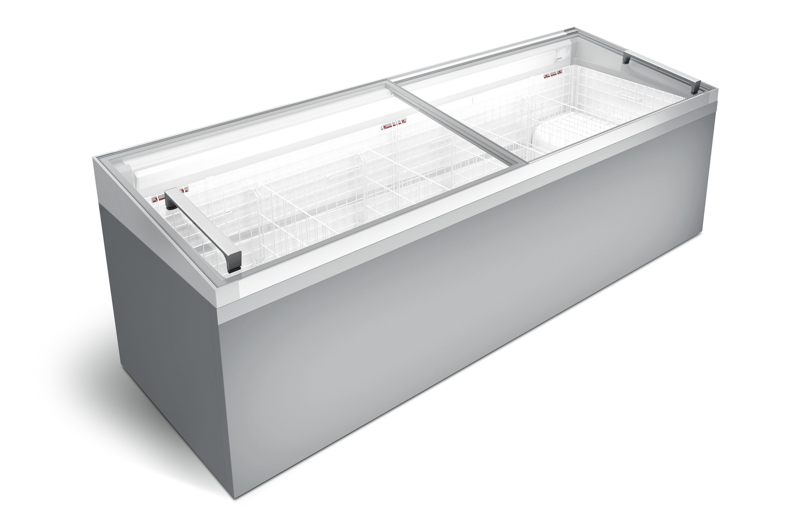 These chillers and freezers are characterised by their large, frameless sliding lids, which are made of glass, provide a perfect view of the products and are easy to move. LED light strips illuminate the interior uniformly, which ensures an appealing presentation of the products and thus increases sales. The ergonomic stainless-steel handle guarantees absolute stability even when the sliding lid is frequently opened. An early fault detection system triggers an alarm in the case of errors.