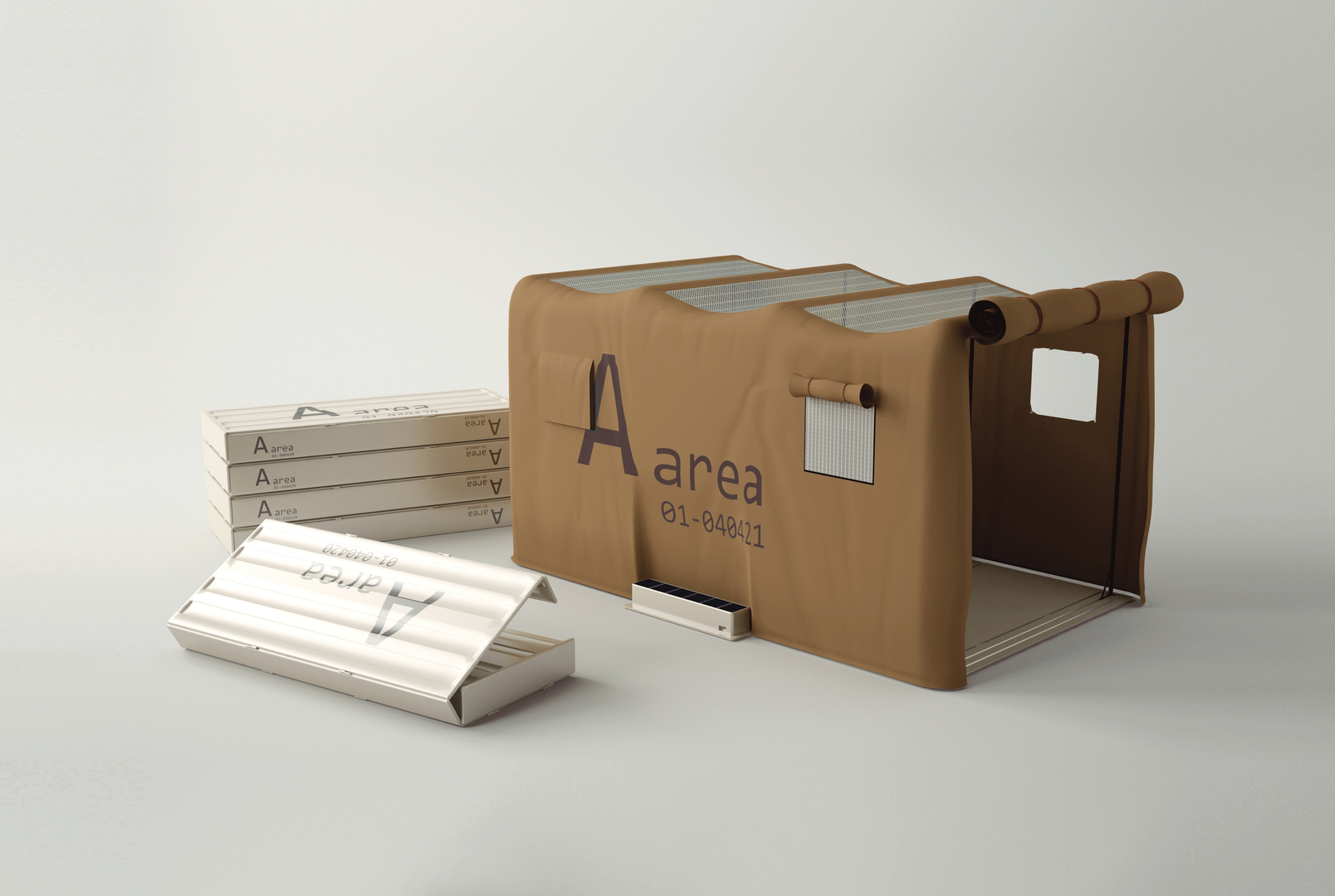 TEMPORARY SHELTER is designed with simplicity of installation in mind. The shelters can be conveniently set up indoors or outdoors, each with a capacity of 2 to 3 people. The shelter is made with a waterproof canvas with a 'sunroof feature', which keeps the rain out but lets the light in. Part of the shelter is a waterproof but breathable fabric that provides ventilation and comfort. The idea is to create a little privacy while also providing the opportunity for a sense of community. To set up the shelters, plug in the safety pin, and it will automatically expand into shape. When not needed, each shelter can be collapsed into a box, and each box slotted and stacked between steel H-columns. This way of storing the shelters can also multi-task as mobile partitions while keeping retrieval of shelters easy as and when needed. Red Dot Award: Design Concept | Concept | Protection