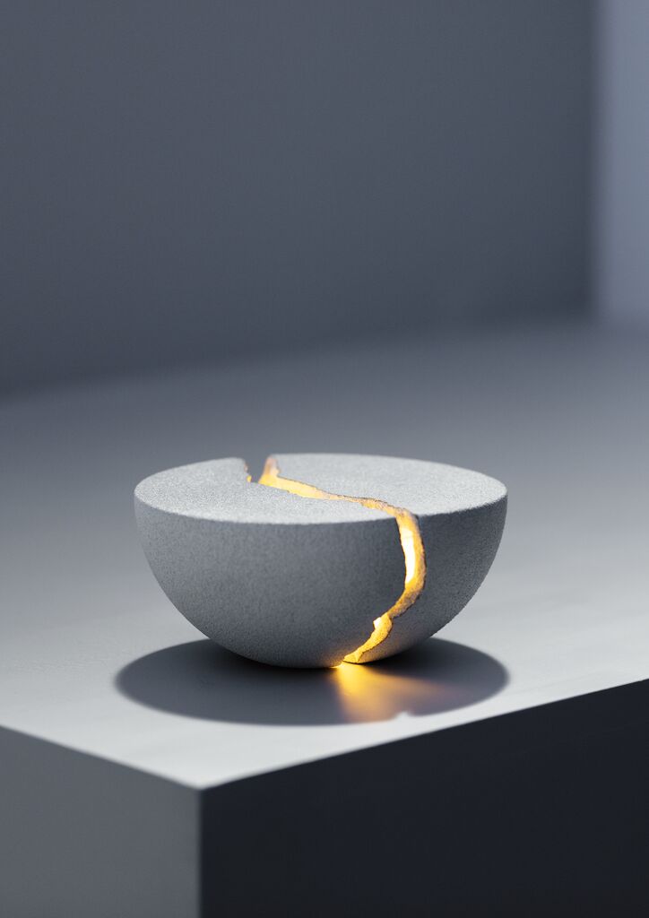 Japan is home to the tradition of kintsugi, a method for repairing ceramics in which the edges of the sherds are glued together using a varnish containing gold pigments, thereby creating unique objects. This same artform has inspired the design of the Teno portable speaker. Its simple shape is reminiscent of a broken bowl, an impression underscored by the use of the natural material sand, which also gives the speaker its textured surface and pleasing haptics. The centrally positioned “fracture line” is an element that is both aesthetic and functional: when the two halves are pulled apart at this line, the loudspeaker comes to life and a warm light appears. The light and loudspeaker functions are controlled via intuitive gestures, such as running a finger over the body to dim the light or adjust the volume, or a light tap to accept and end calls. Natural sounds provide acoustic feedback. A 20-watt, Class-D amplifier delivers balanced sound; for a stereo listening experience, two Teno devices can simply be linked via Bluetooth. With a diameter of 13 cm, Teno is ergonomic and easy to transport.